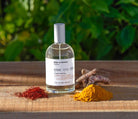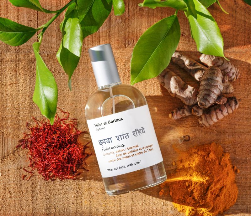 Inspired by travels to India and the tranquility of mornings there, curcuma, saffron, and basmati, surrounded with palm and orange tree flowers, on a calming base of Indian sandalwood and Tibetan cedar. 100mL/3.33 us fl. oz.